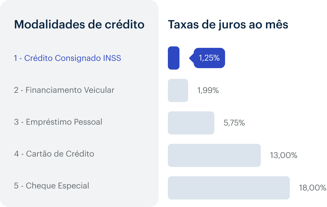 Taxas inferiores ao cartão de crédito convencional a partir de 2,70% Mês.